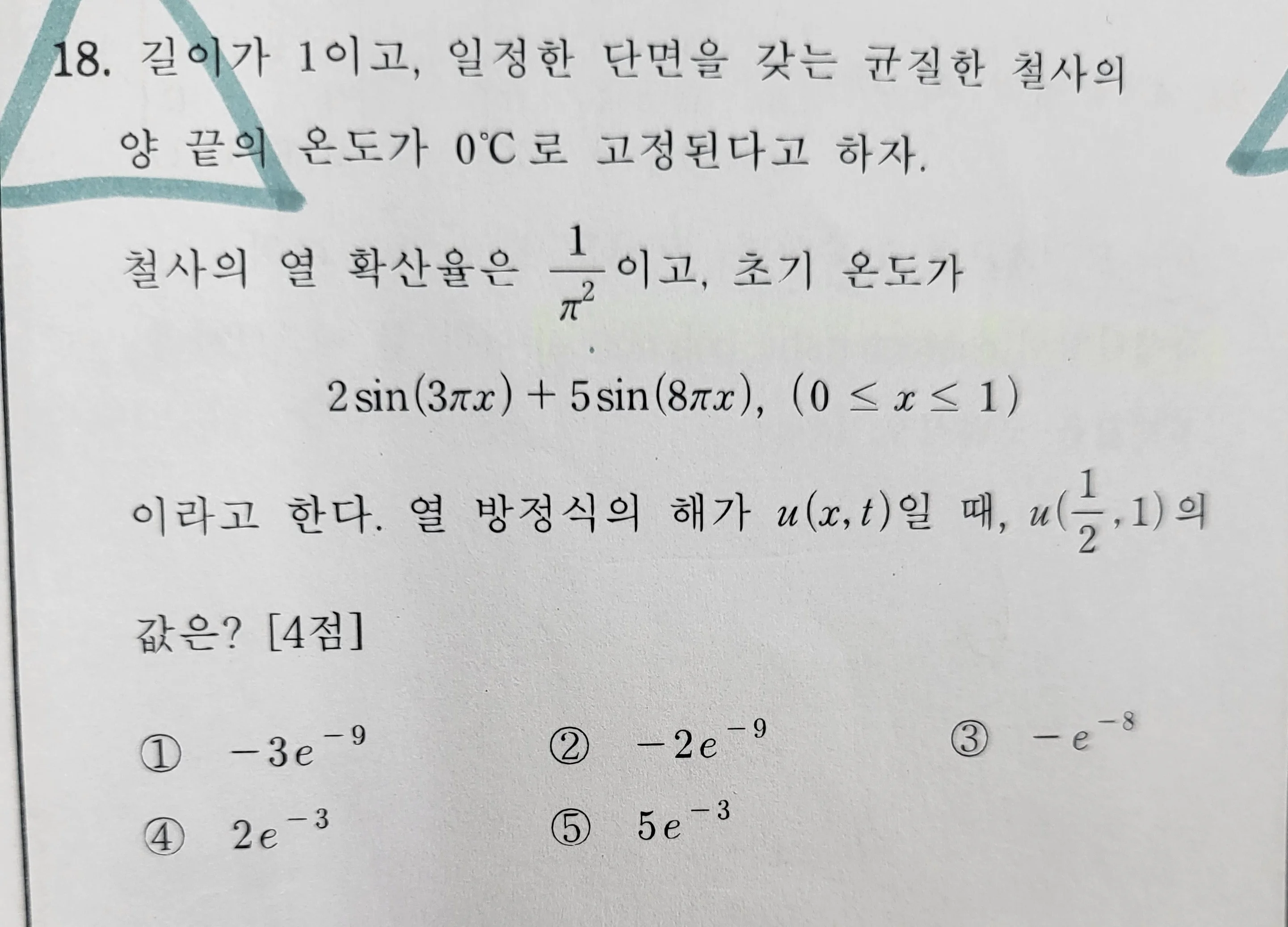 23한양대 18번 질문이 있습니다. 처음 보는 형태인데 열 확산율이 무엇이고, 열 방정식은 어떻게 세워야할지 전혀 감이 잡히지 않습니다.
