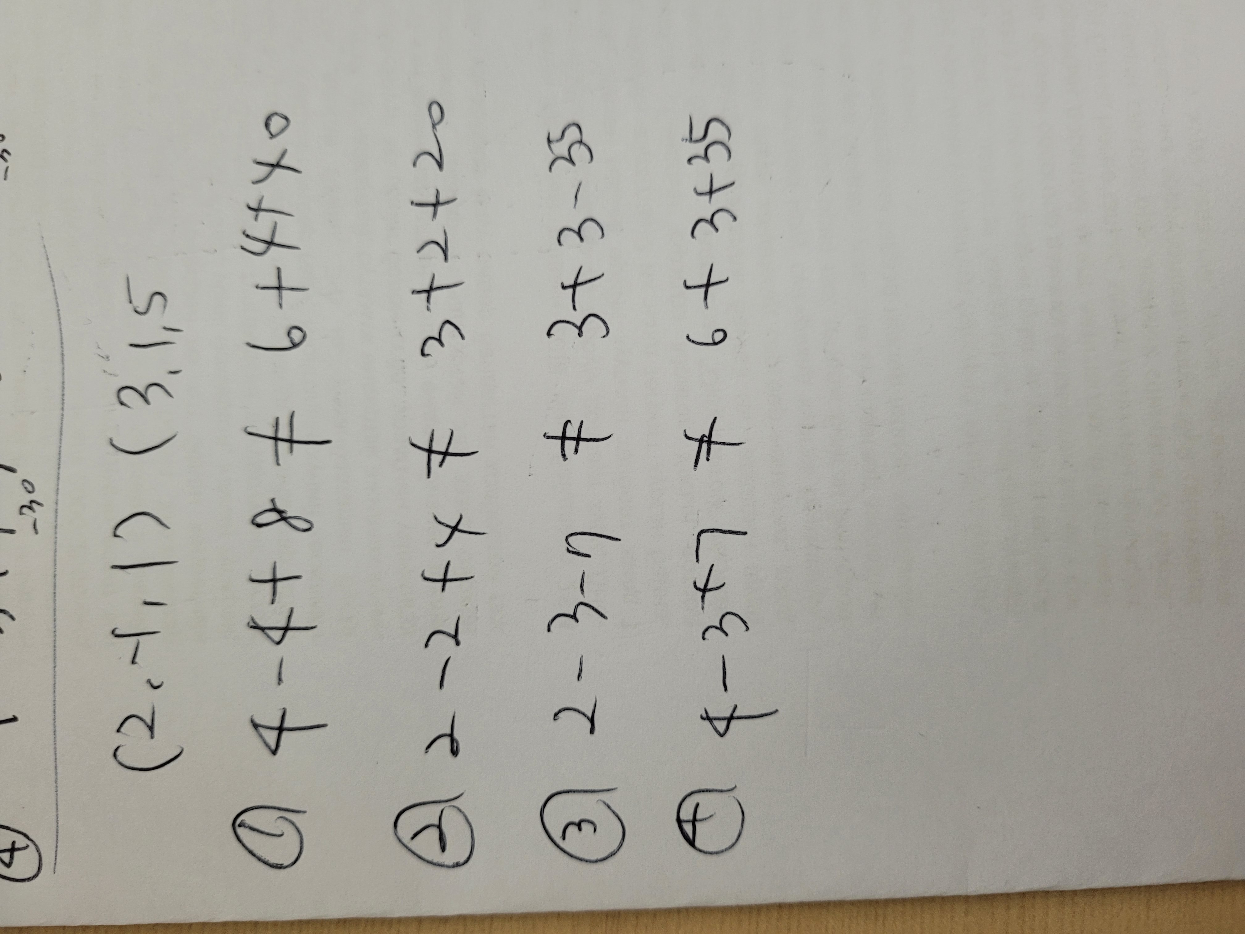 같은거리에 있는 평면의 방정식을 찾는거면 2x+4y+8z에 (2,-1,1)과 (3,1,5)를 대입했을 때 같은 값이 나와야하는거 아닌가요..? 그리고 1번 뿐만 아니라 2,3,4번 모두에 (2,-1,1)과 (3,1,5)를 대입했을 때 두 값이 서로 다릅니다.