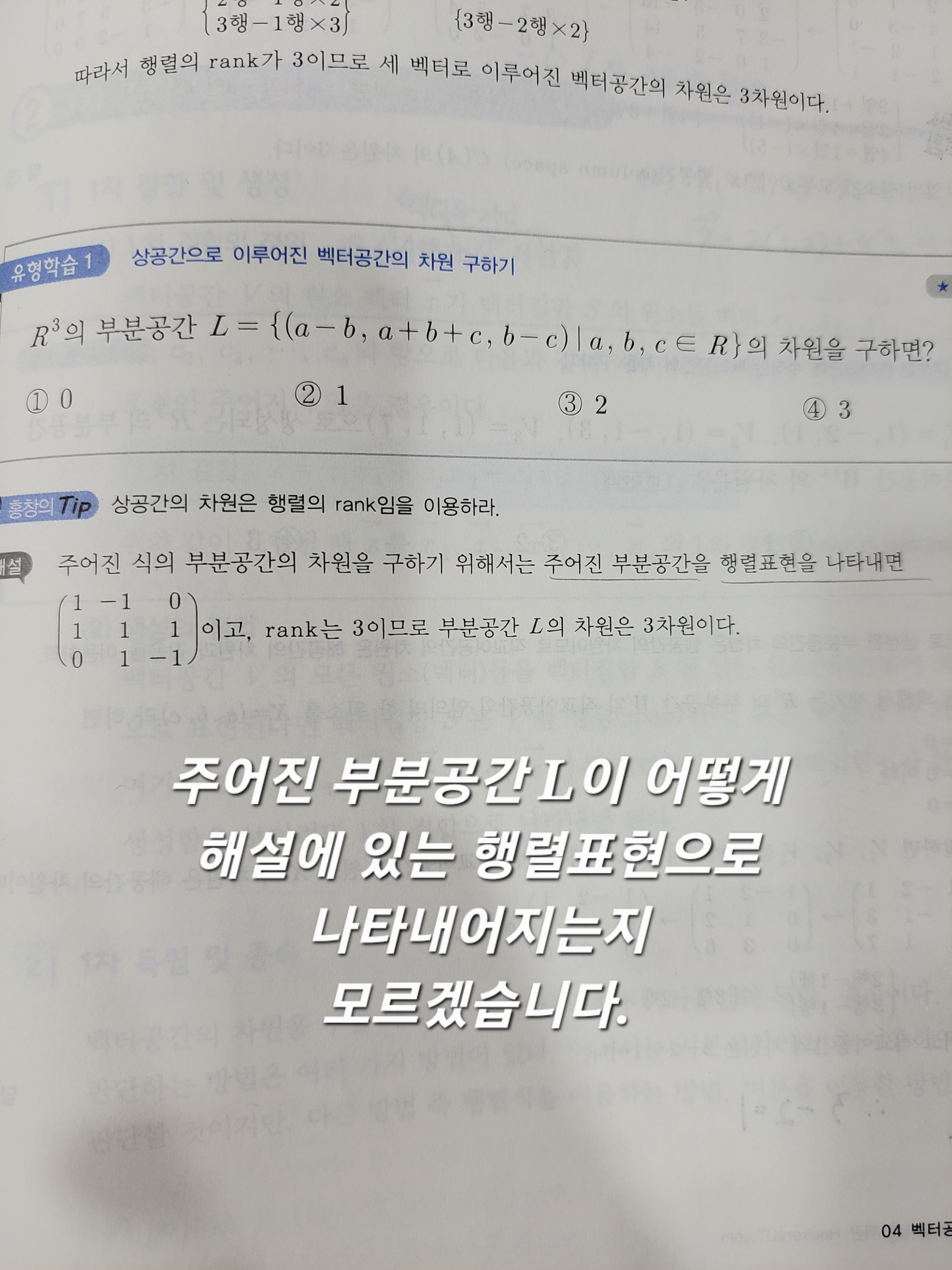 그리고 유형학습1번의 4번 선지에서 3X3크기의 모든 대칭행렬이 공간이 되는 이유도 궁금합니다.