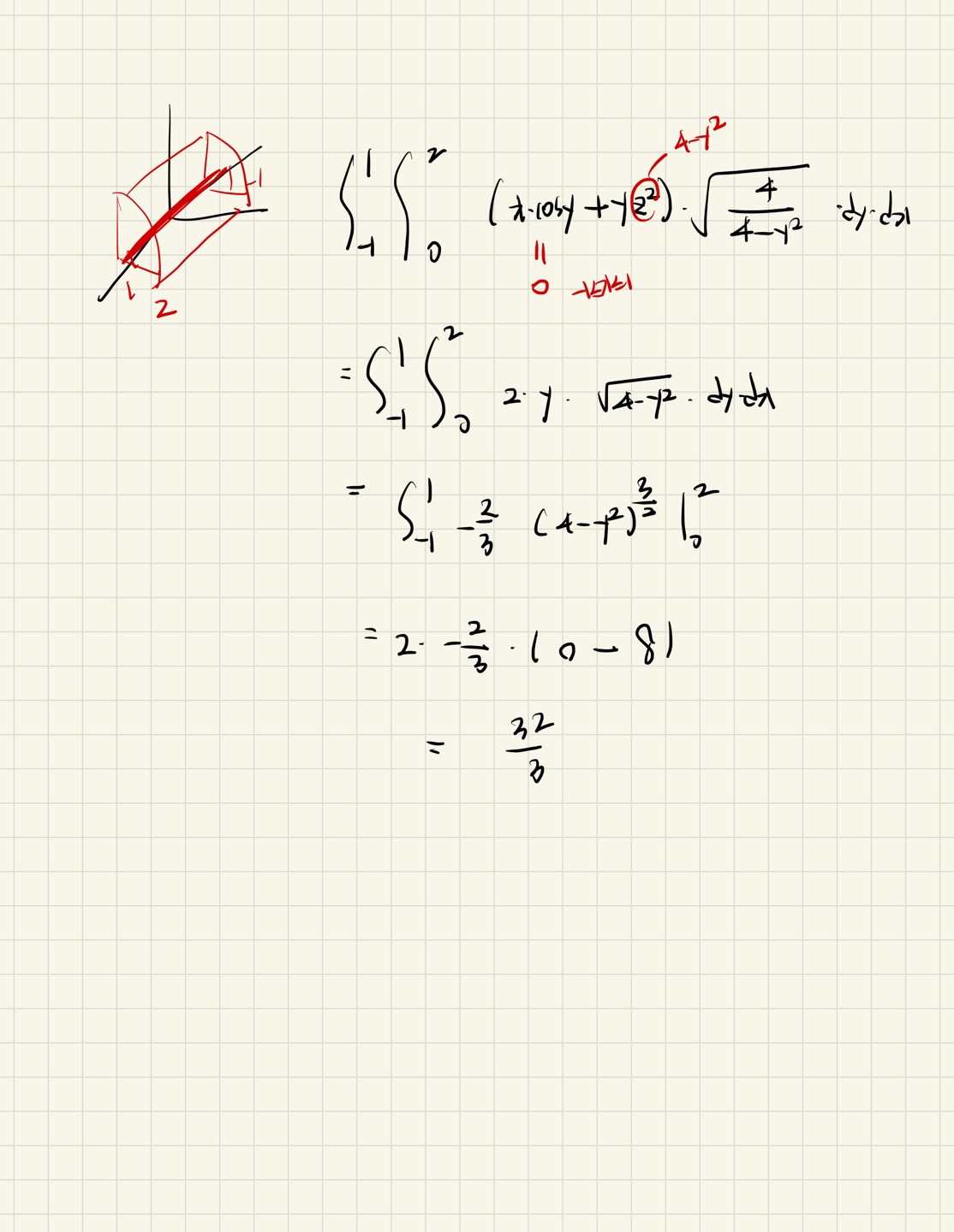 무엇보다 밀도식에 cosy가 문제인데.. 이게 없어졌으면 좋겠는데 어차피 x가 -1부터 1 적분이라 y적분과 상관없이 지워질 운명입니다. 이걸 눈치채는게 핵심이었습니다. 빠르게 눈치 채기 쉽지는 않았겠네요.
