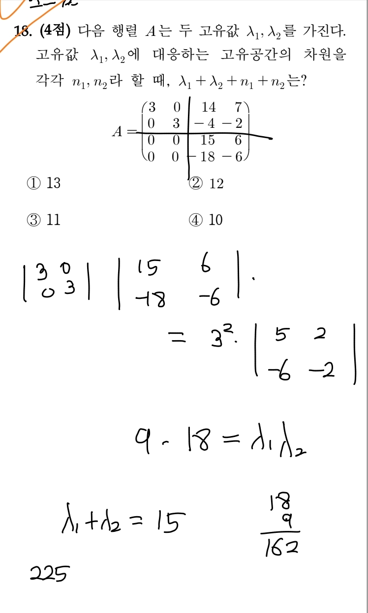 주대각 -람다를 하시고 블록 행렳식 이용해서 람다 직접 구해야합니다.