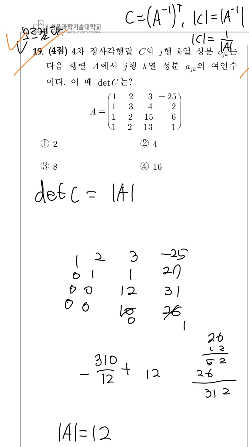 지우기전 구한 행렬식만으로도 이미 2가 나옵니다. |