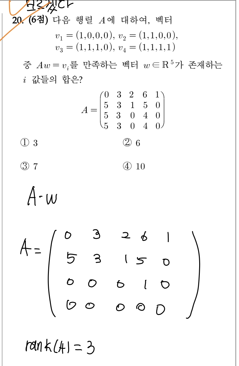 행렬에서 연립방정식의 해 파트와 연결지어 생각해야 합니다. 물론 솔직히 이 판단이 쉽진 않습니다. 자주 나오는 유형도 아니기에.