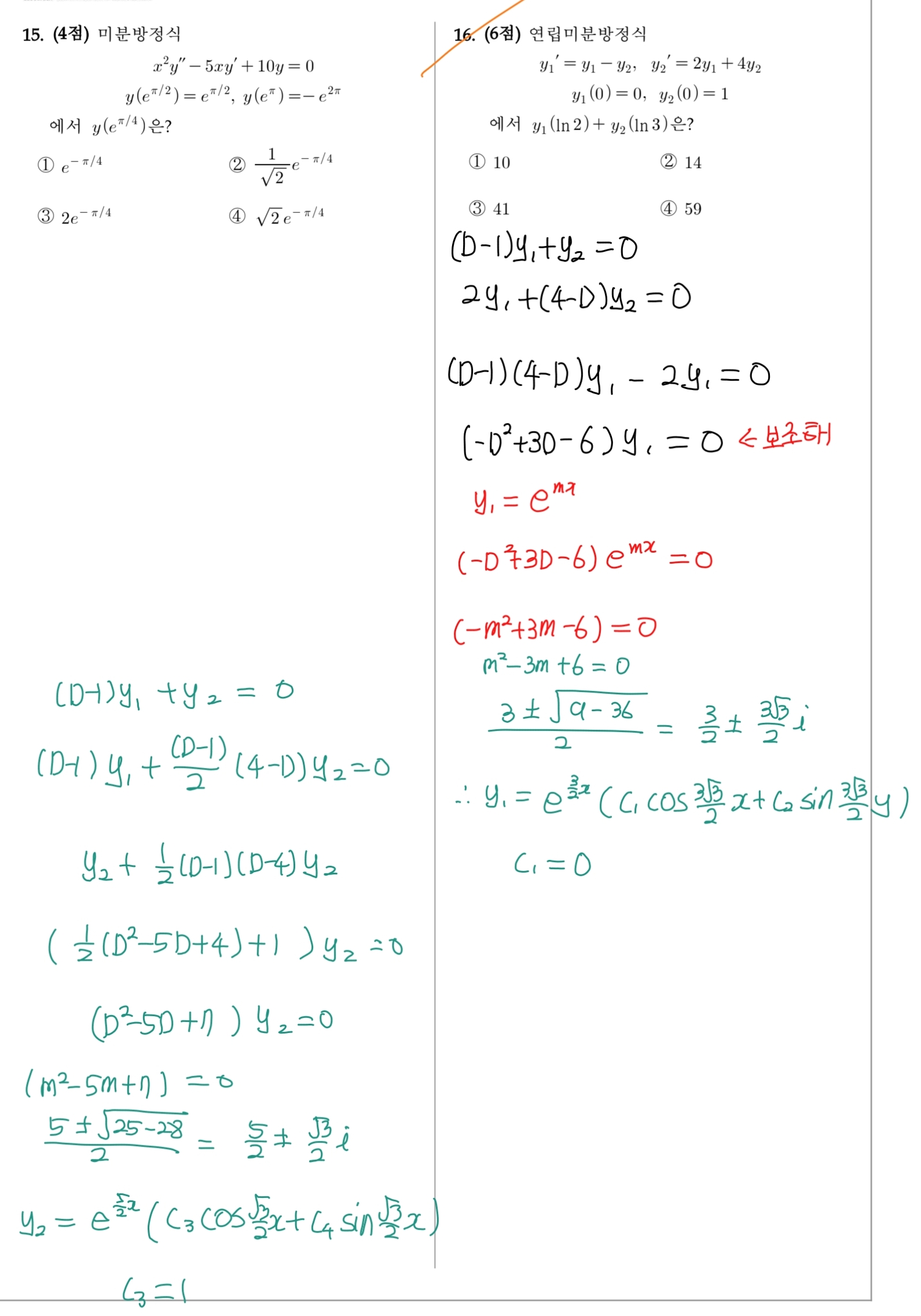 연립 미분방정식 푸는데 보조해 구하는데 미분연산자 사용했는데 보조해를 구할때는 무조건 행렬을 이용하는게 나은건가요?