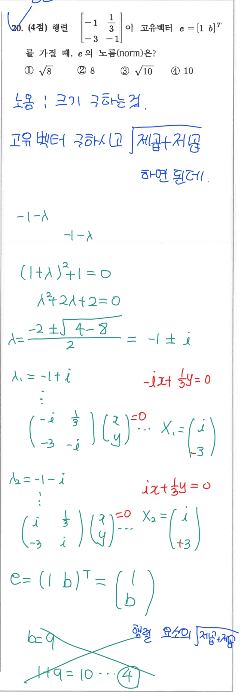 그럼 x=1 y=-3i가 고유벡터입니다.