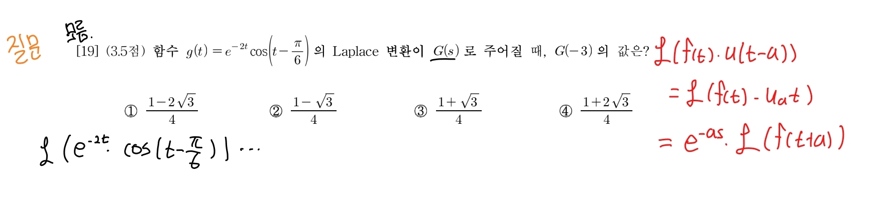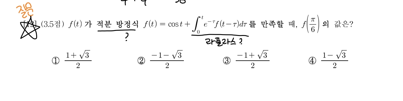 주어진 형태가 라플라스 합성곱이네요.라플라스라고 언급이 없어서 라플라스라고 판단하기 힘들었을수도 있었겠네요.