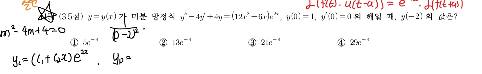 평범한 미분방정식인줄 알았는데 =(12x^2-6x)e^2x 이게 서로 곱해져있는 형태는 처음봅니다. 어떻게 풀어야하나요? |