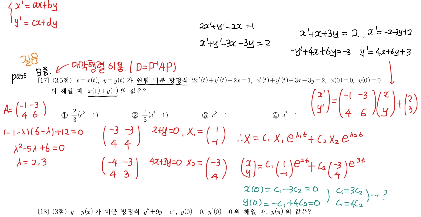 좀 옛날 문제라서 그런지 모르겠는데 18학년도 과기대 문제에는 처음 보는 문제가 많네요.. 이 문제들은 안배운거같은데 혹시 이 중에 풀어야하는게 있었을까요..?