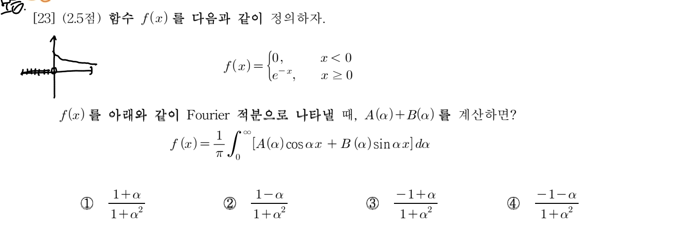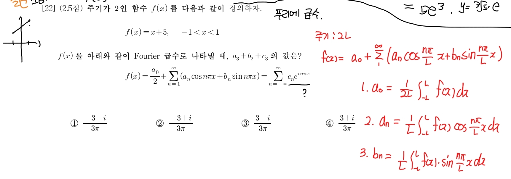 푸리에 계수를 이용해서 푸는 문제인거같은데 일단 주어진 식이 우함수 기함수 둘 다 아닌거같아서 풀기 어렵겠다 생각했습니다