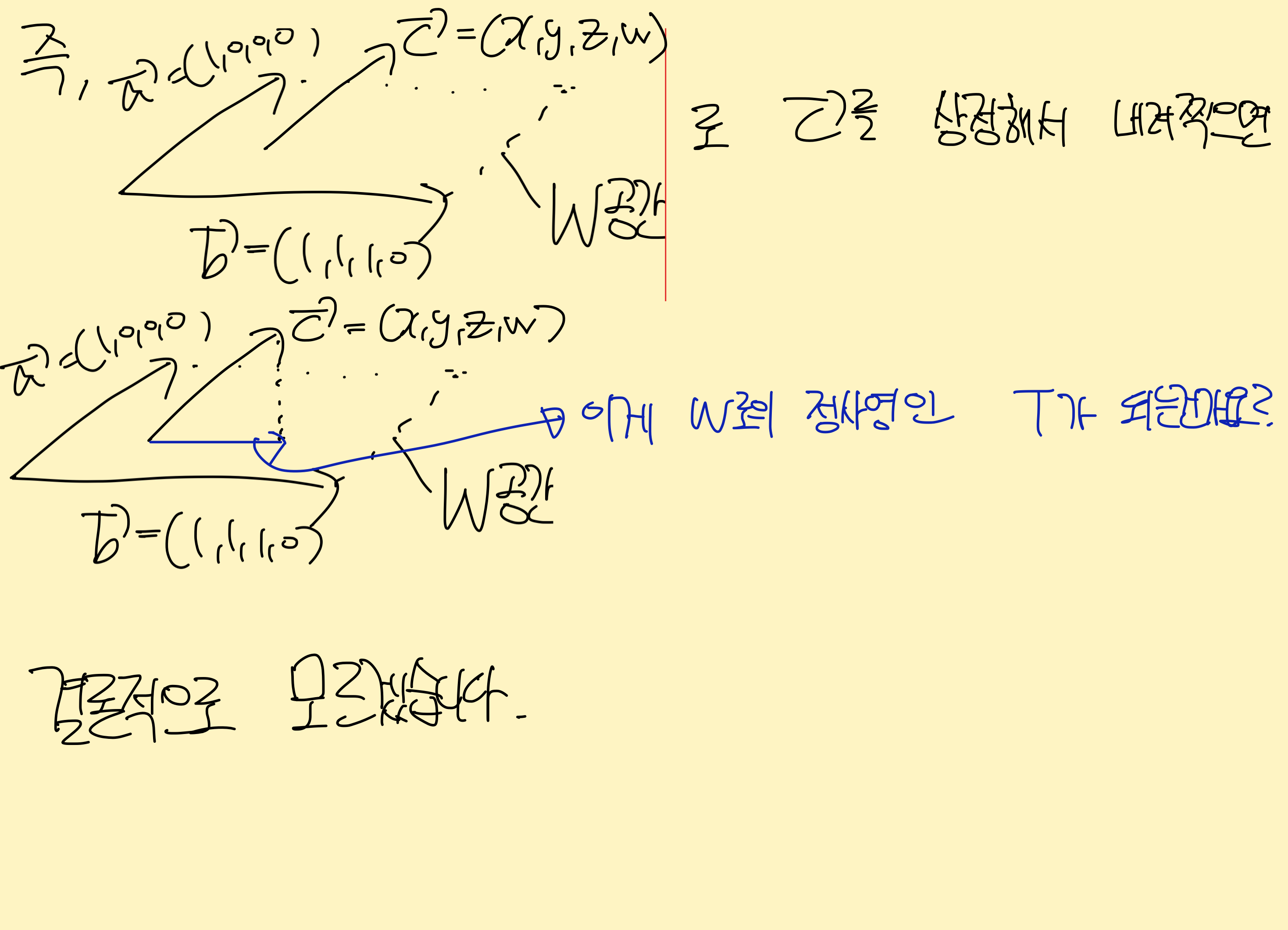 이때 정사영윽 직교하는 단위벡터 만들어야 저런식으로 합치기 가능합니다.