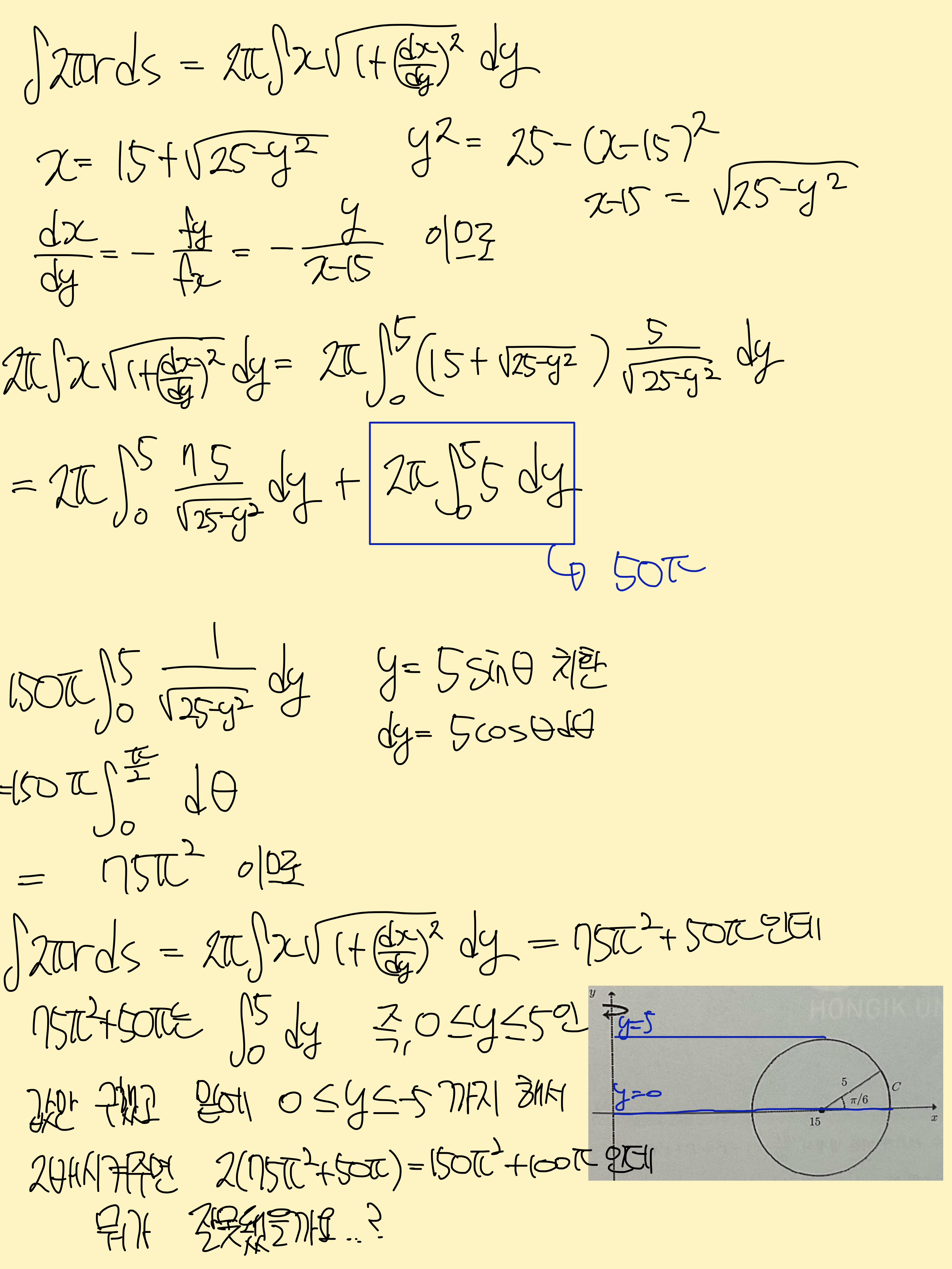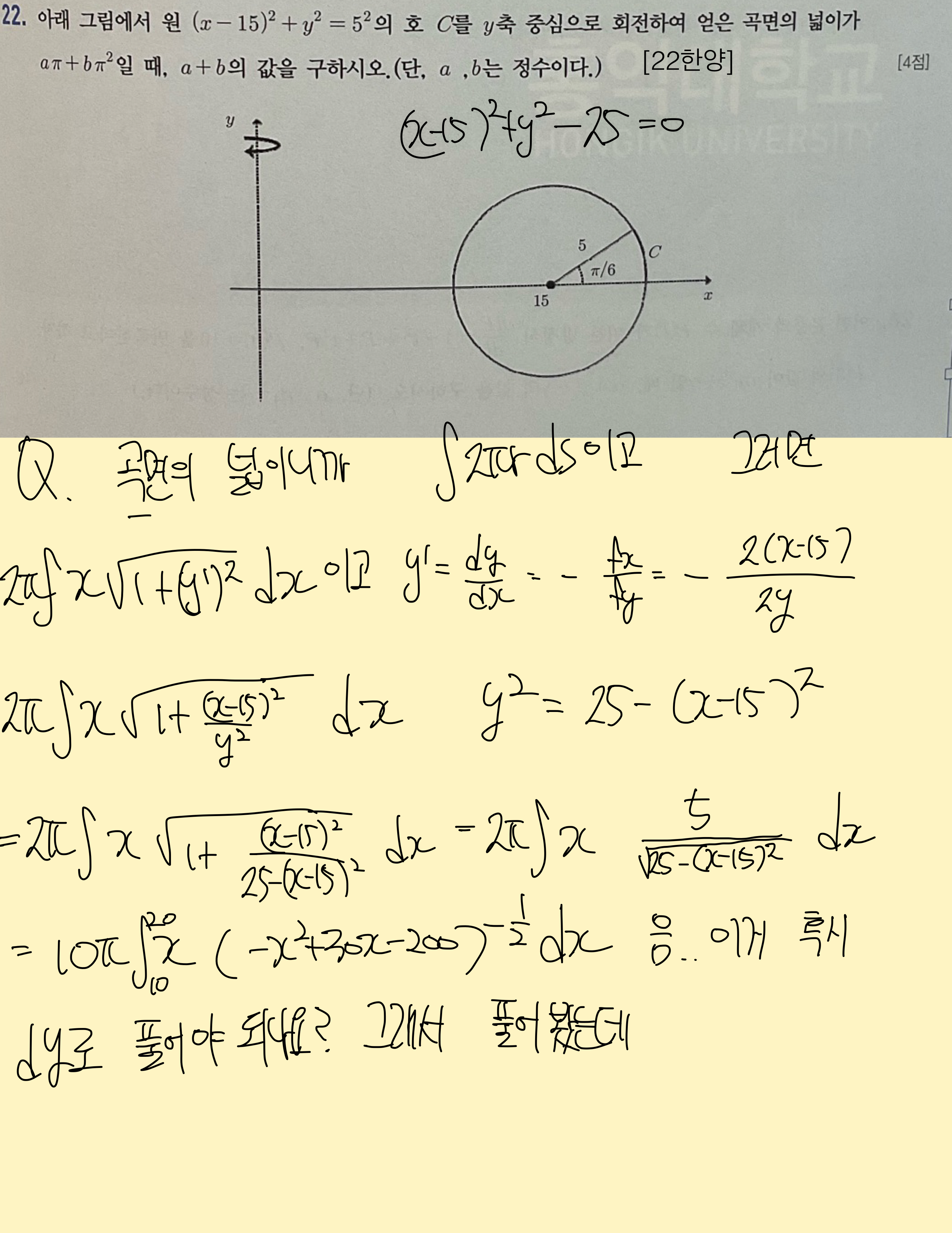 애초에 원이라 바로 치환으로 풀면 실수도 없고 금방 풉니다. 아래 적어두겠습니다.