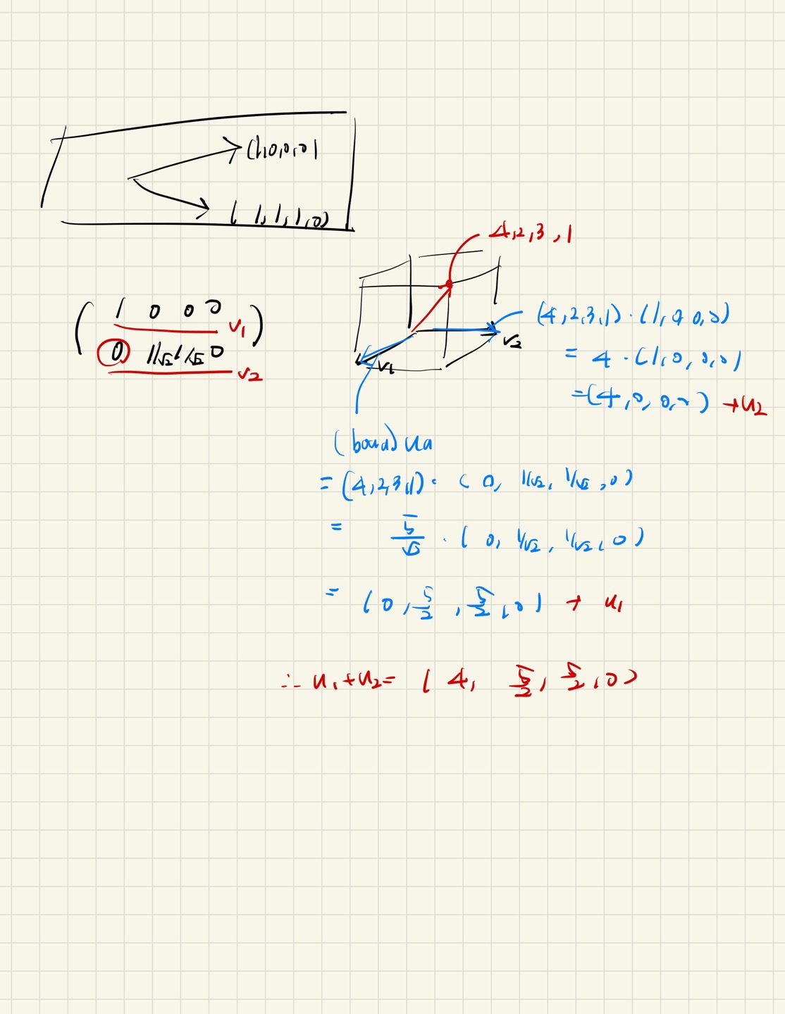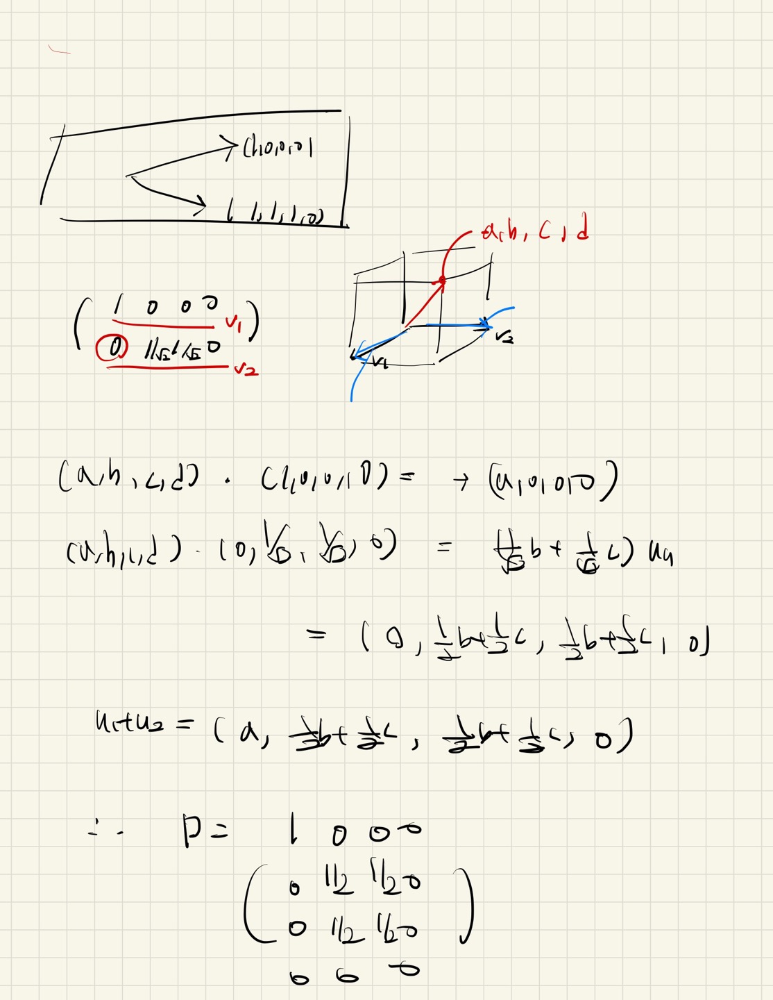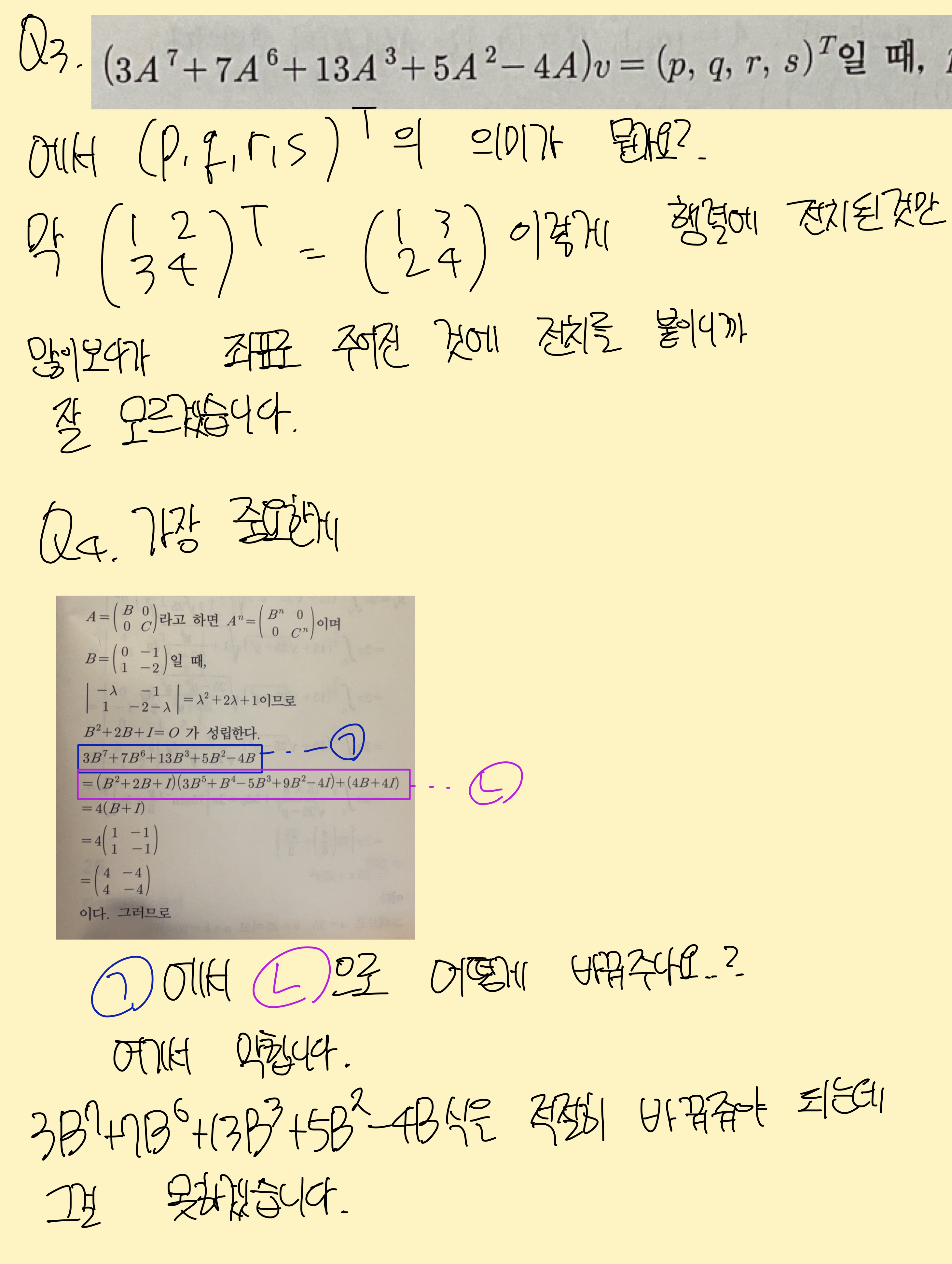 솔직히 다분히 결론적인 풀이죠. (1,0,0,0)^T는 그냥 전치하면 4X1 세로로 쓰면 됩니다. 전치는 정방이 아닐떄도 할 수 있습니다.