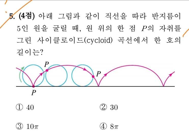 5번은 싸이클로드 곡선을 알면 공식으로 쉽게 구할 수 있고