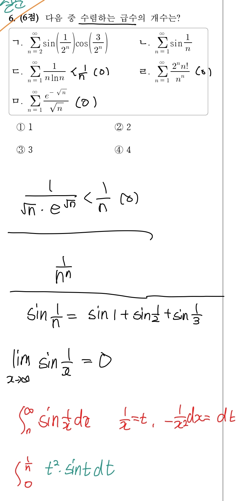 ㄴ은 정적분 값이 나오면 수렴한다는걸로 찾아보려고했는데 복잡하게 나와서 이 방법이 맞는지 모르겠네요.. |