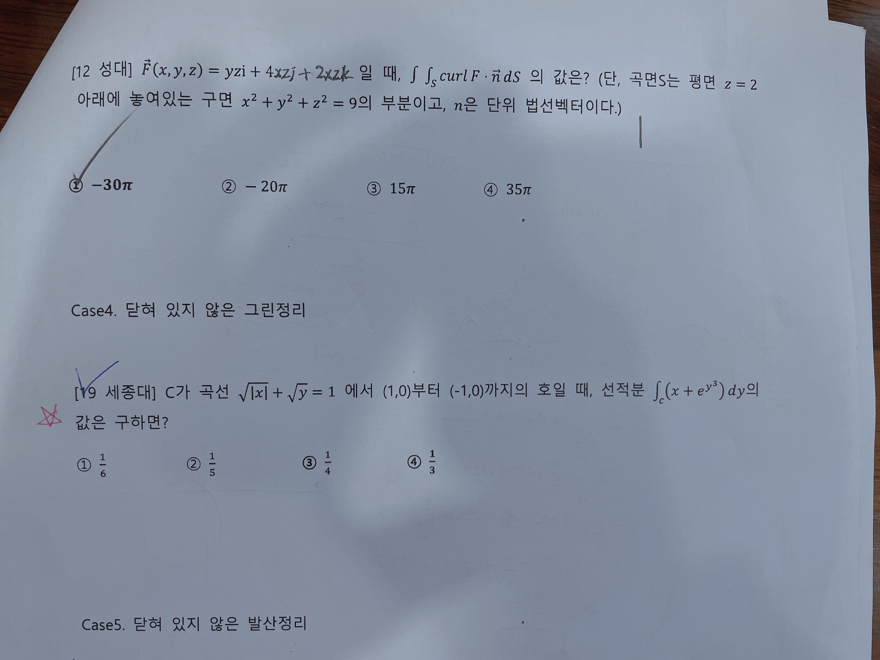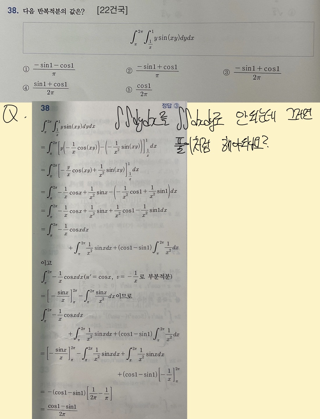 적분순서 바꿔서 풀면 쉬울 줄 알았는데 잘 바뀌지도 않고 그냥 풀자니 엄청 지저분하고...