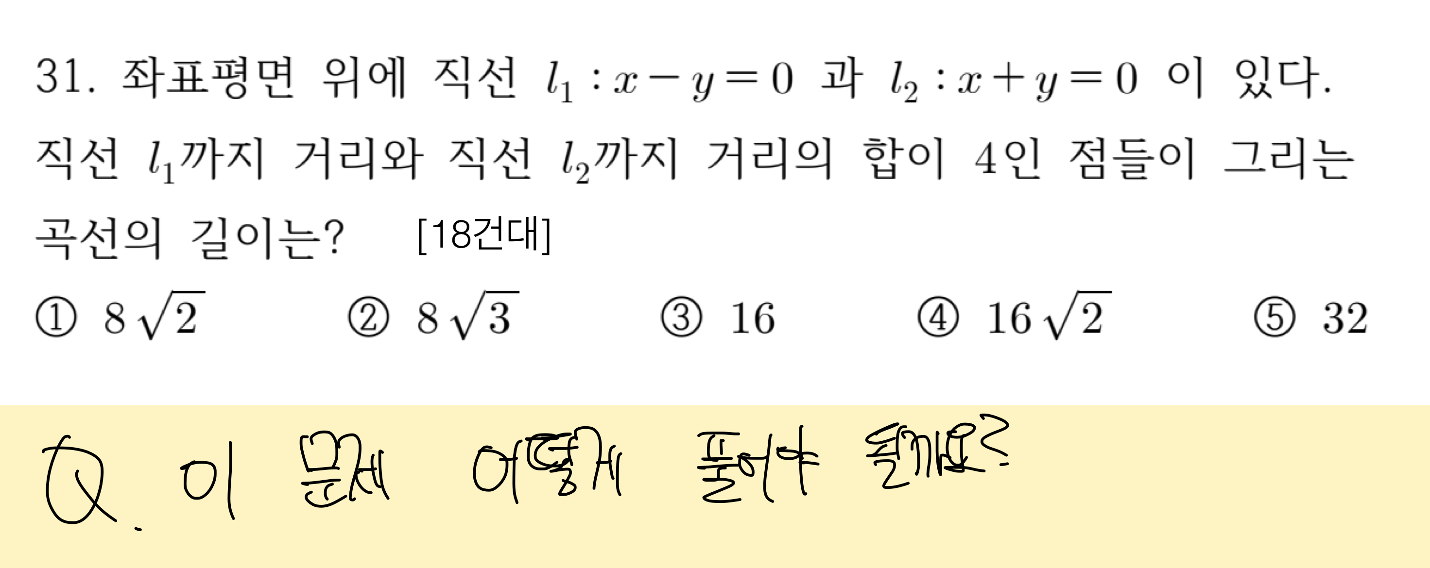 그런데 건대 기벡문제는...참 많이 어렵습니다. 이 문제는 끄적이다보면 쉬운 케이스이긴한데..