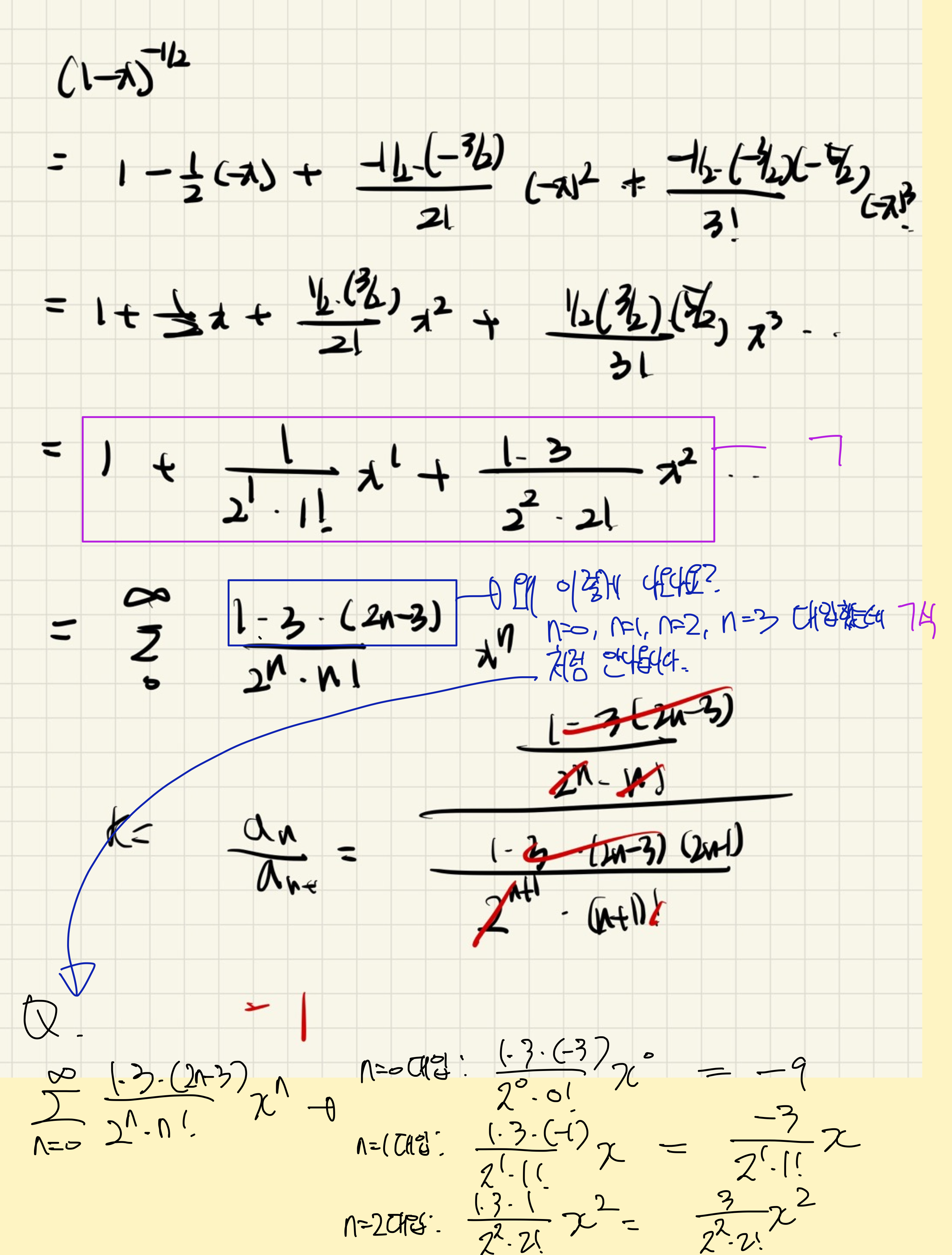 n=1 집어넣으면 첫항이 1나와야 해서 2n-3이 아닌 2n-1로 해야겠네요. 다행히어차피 n계수가 중요해서 답은 같습니다. |