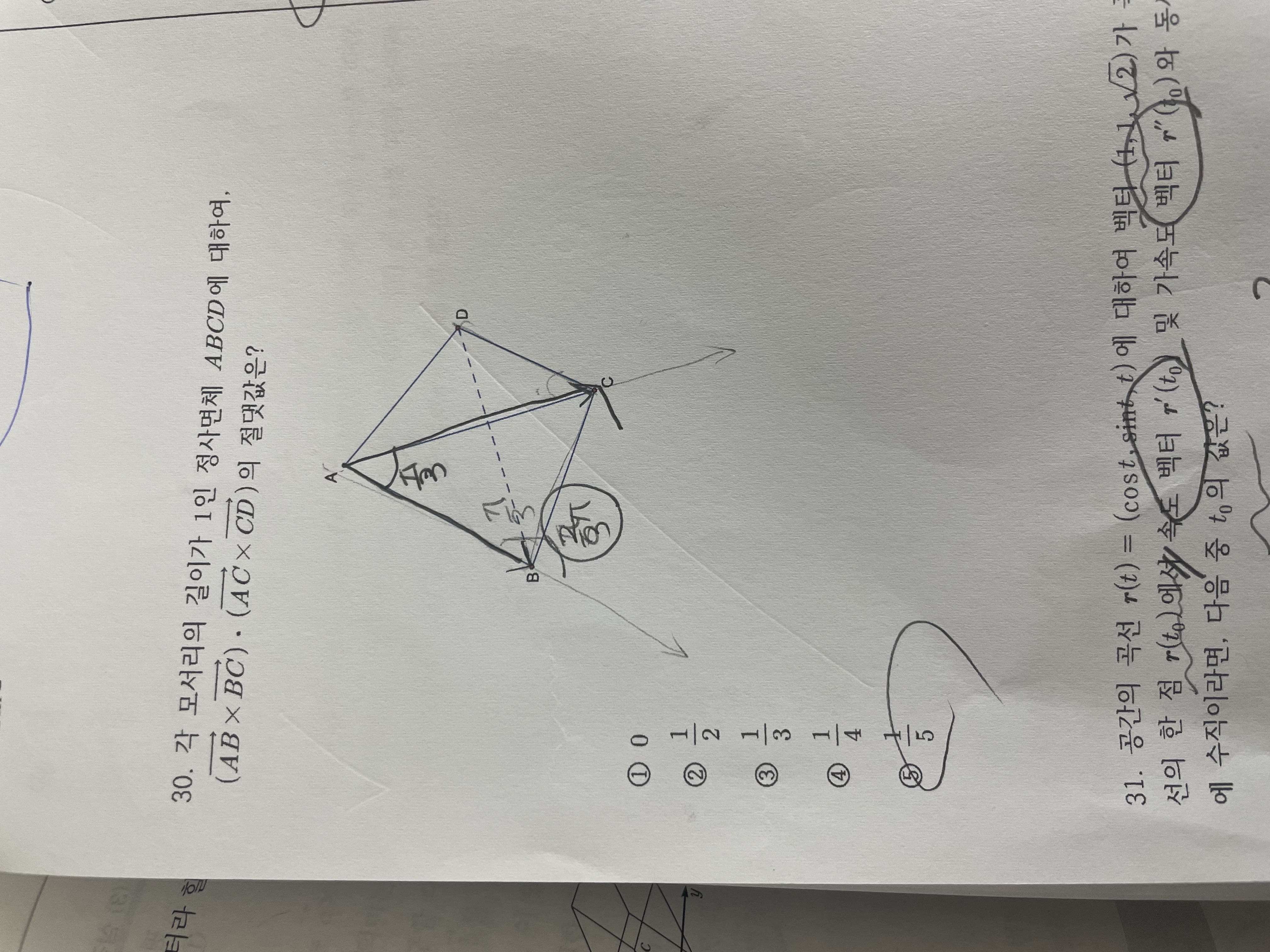 건대 30번문제입니다. 이 벡터외적의 내적은 라그랑지항등식을 외워서 풀어야 하는지 궁금합니다!! 기하적으로 풀 수 있는 방법은 없을까요?