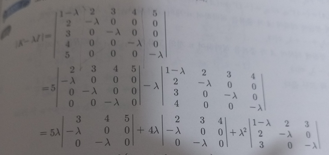 물론 행렬원소 하나 뺴고 다 지우는 경우 이 사실을 신경쓰지 않죠. 하지만 이 문제는 맨 밑줄의 -람다가 미지수라 0으로 만들기에 너무 번거로워 살린 상태에서 구합니다.