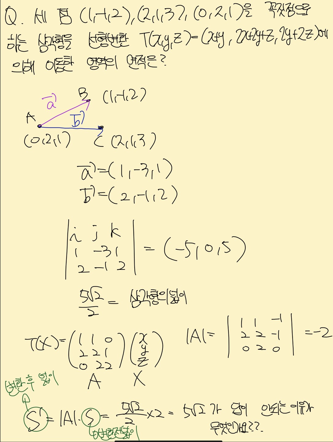 선형변환 후 이동한 영역의 면적 |