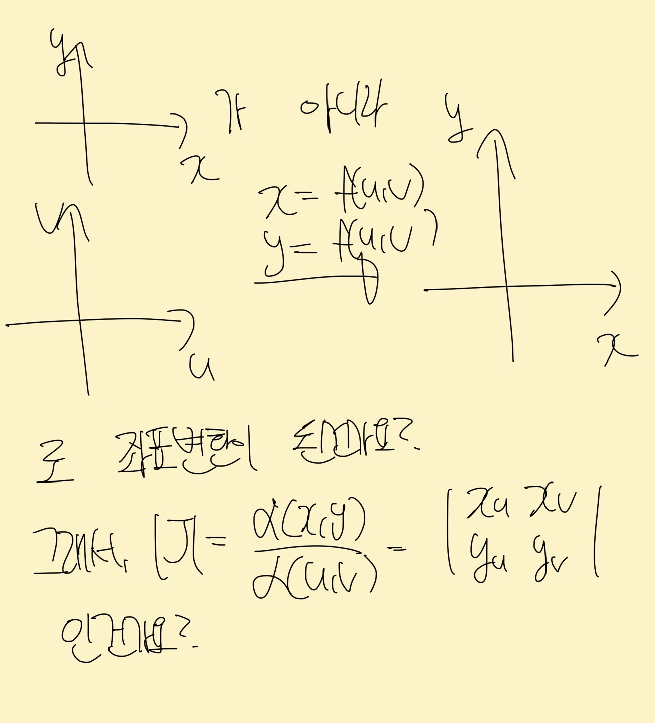 그러니 야코비안값이 반대로 뒤집힌거구요.