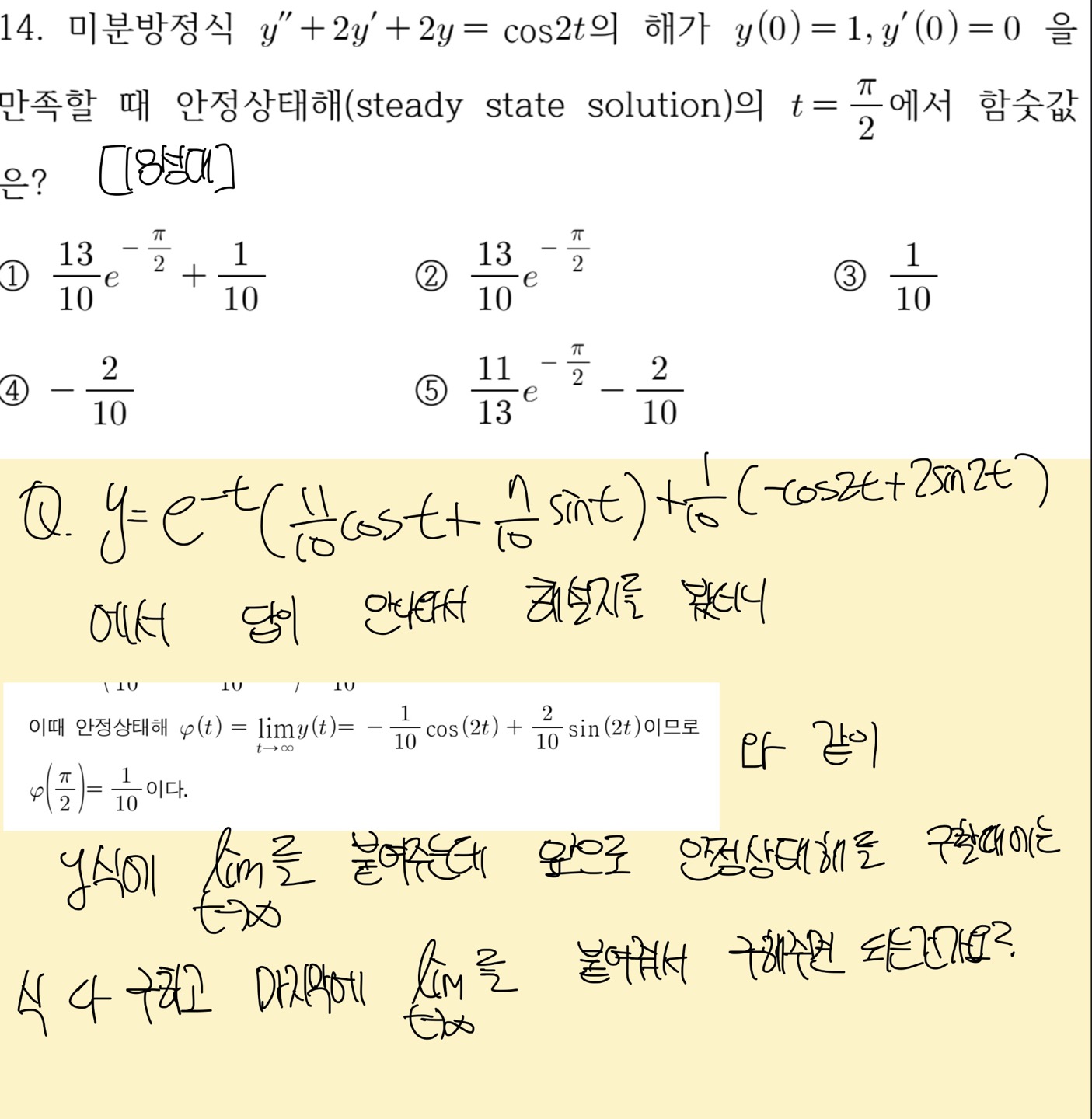 결론적으로 안정상태해는 설명되어있는대로 시간이 무한때 영향이 없어지는 함수를 지운 해입니다.