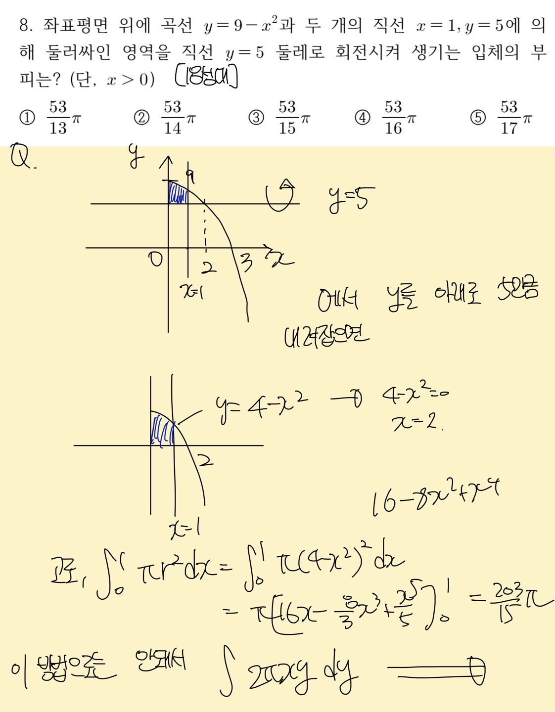 그래서 식이 (y-5)^2pi 가 나온 것입니다. |
