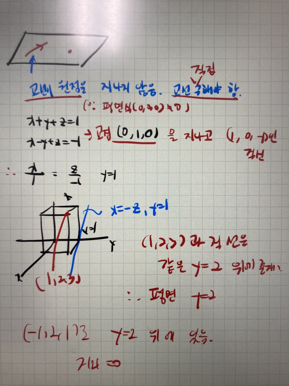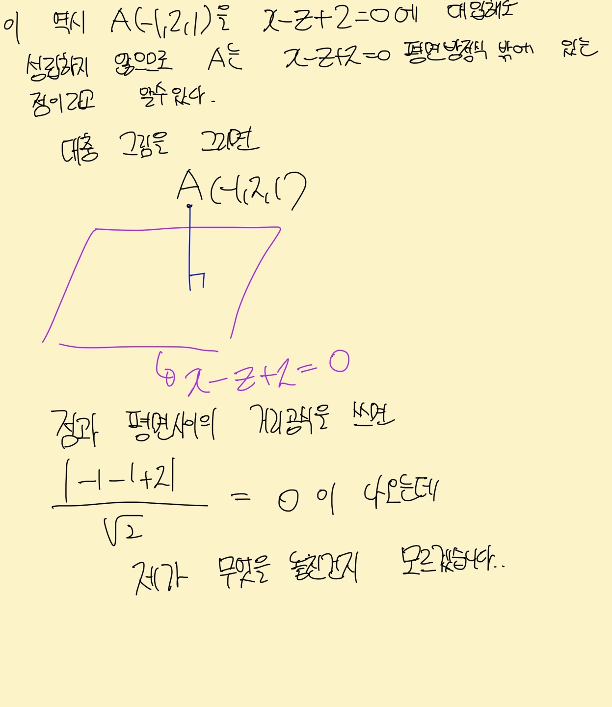 제가 볼 떄 평면의 법선벡터 때 관계를 혼동하는게 아닌가 싶네요. |