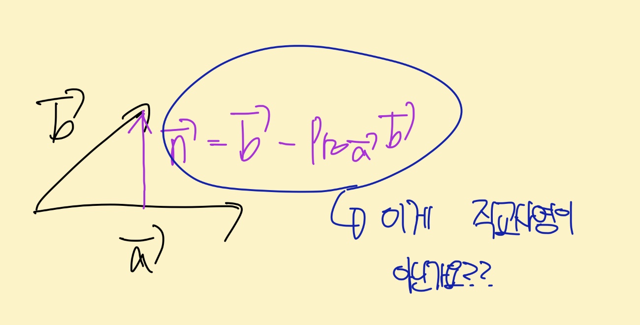2. 직교사영이면 p벡터 혹은 p벡터 크기를 구하는겂니다. 주어진 식은 b-p 로 최단거리를 구한 것이네요!