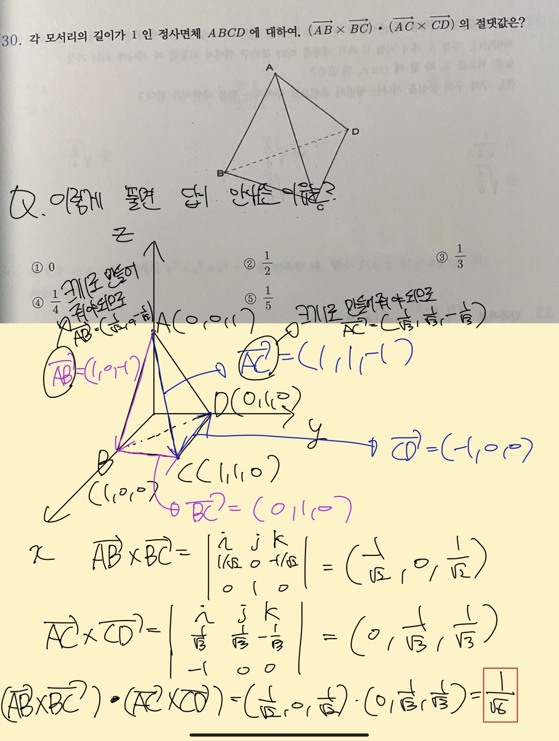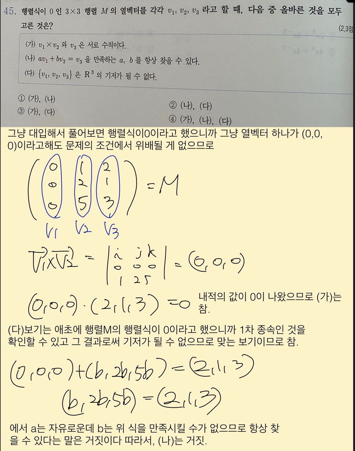 + 재질문 벡터에서 답변주신거봤는데 답이 0인 선지는 없었어요. 기출문제도 아니고 다른 학원에서 가져온건데 그냥 이 문제는 스킵하겠습니다. 실전에서는 못 풀 것같습니다.. 그래도 정성껏 답변해주셔서 감사합니다 교수님. |