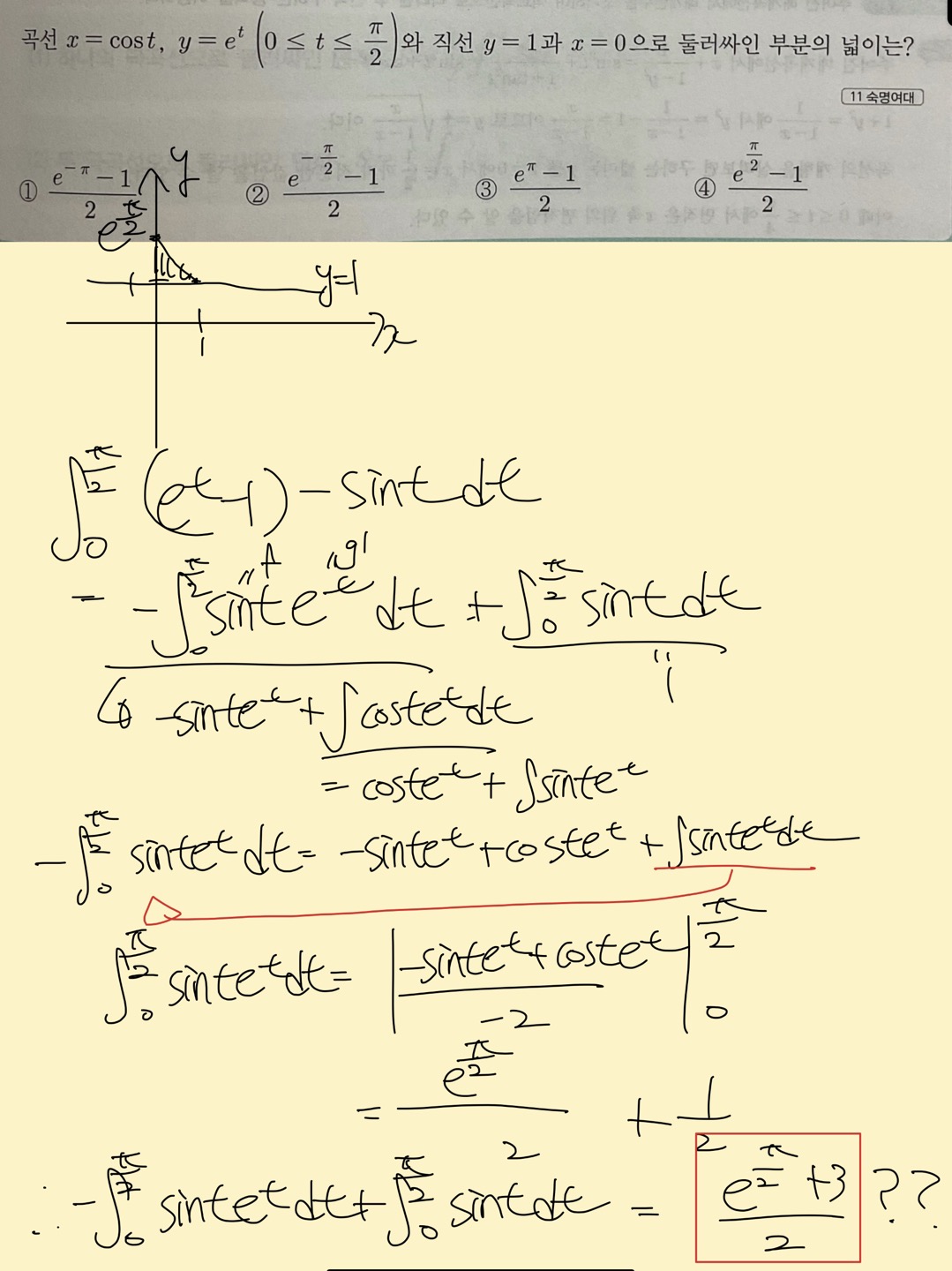 잘못했겠지 계속 시도해보자 해놓고 1시간동안 저렇게 나오니까 원래 저렇게 해서 잘만 적분문제풀었는데 이게 왜 안되지..?라는 딜레마가 옵니다.. |