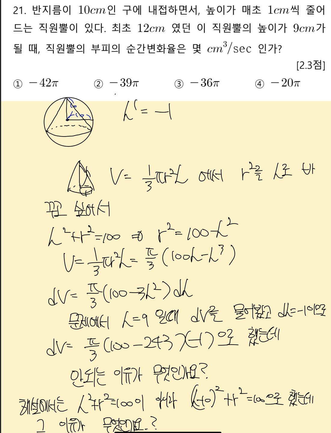 일단 h^2+r^2=100 을 왜 썻는지 생각해봐야 합니다.