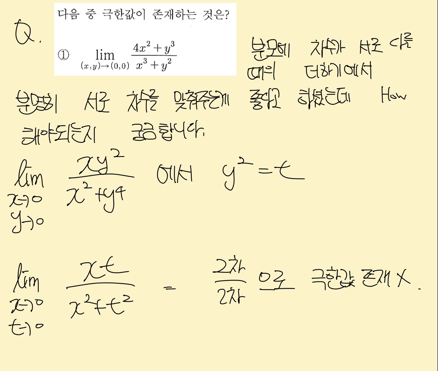 지우고 t^4/3이 남습니다. 이러면 위 차수가 더 작으니 발산입니다.