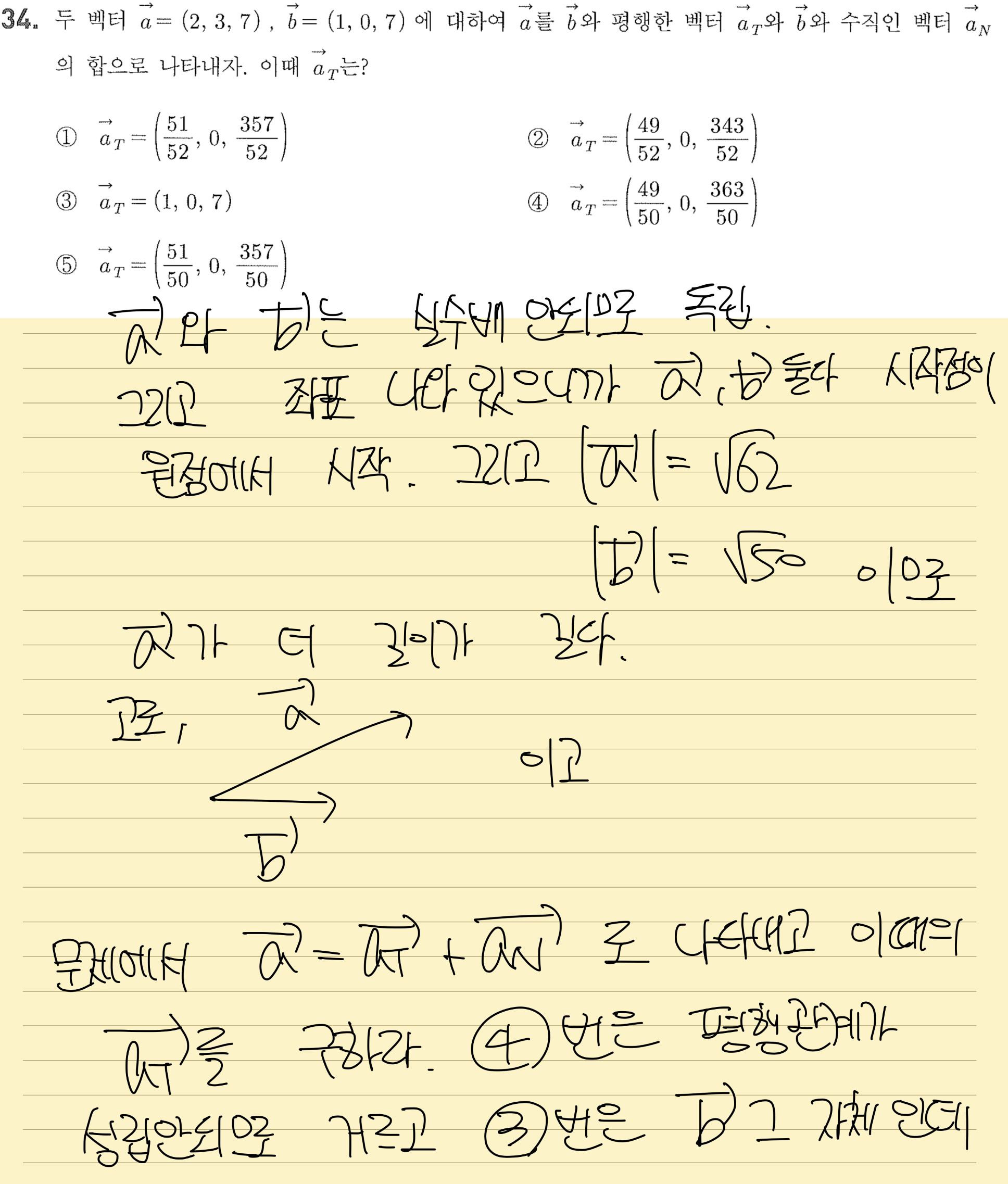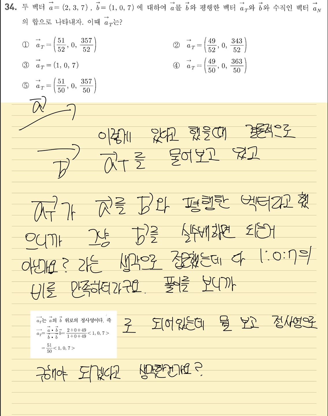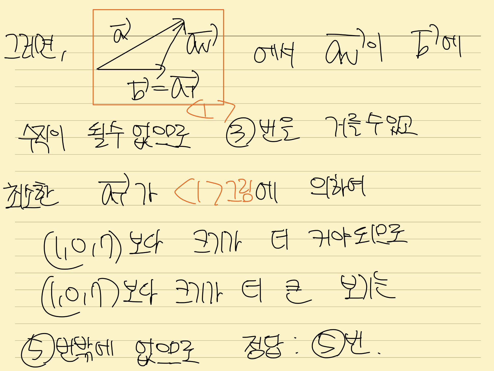 3번은 b 그 자체인데 a를 b만큼 가고 b에 수직인 벡터로 간다는 건 직각 삼각형이 그려져야 하죠?