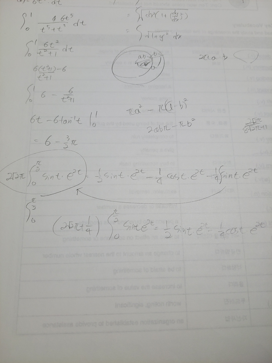 적분할 때 2루트2는 밖으로 뺴고 인테그랄 sint*e^2t 를 적분하고 넘기면 5/4가 뽑혀요!
