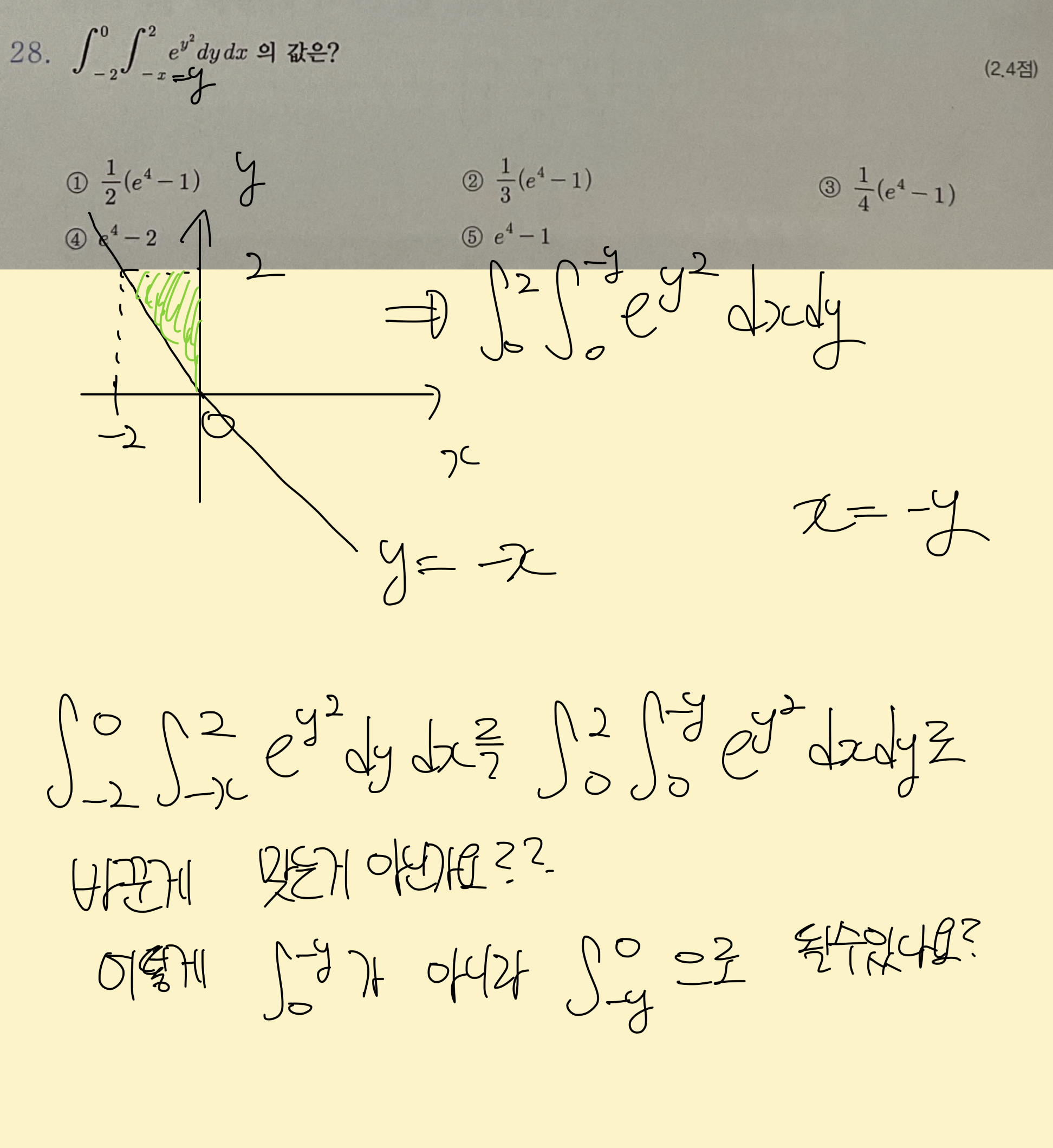 적분구간이 저랑 반대더라구요. 근데 아무리 생각해도 저 적분구간으로 바꿔준게 맞는데 왜 반대로 됐을까요.. |