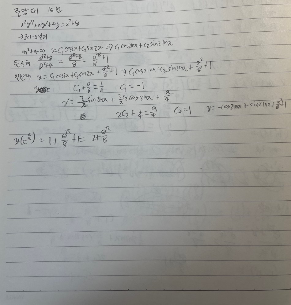 2018 중앙대 12번에 특수해중 상수항을 어떻게 처리해야 하는지 모르겠습니다. |