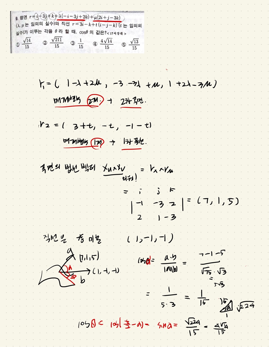 하지만, 저 문제는 수능 기하와벡터에서 킬러문제로 가끔 등장하는 문제입니다.