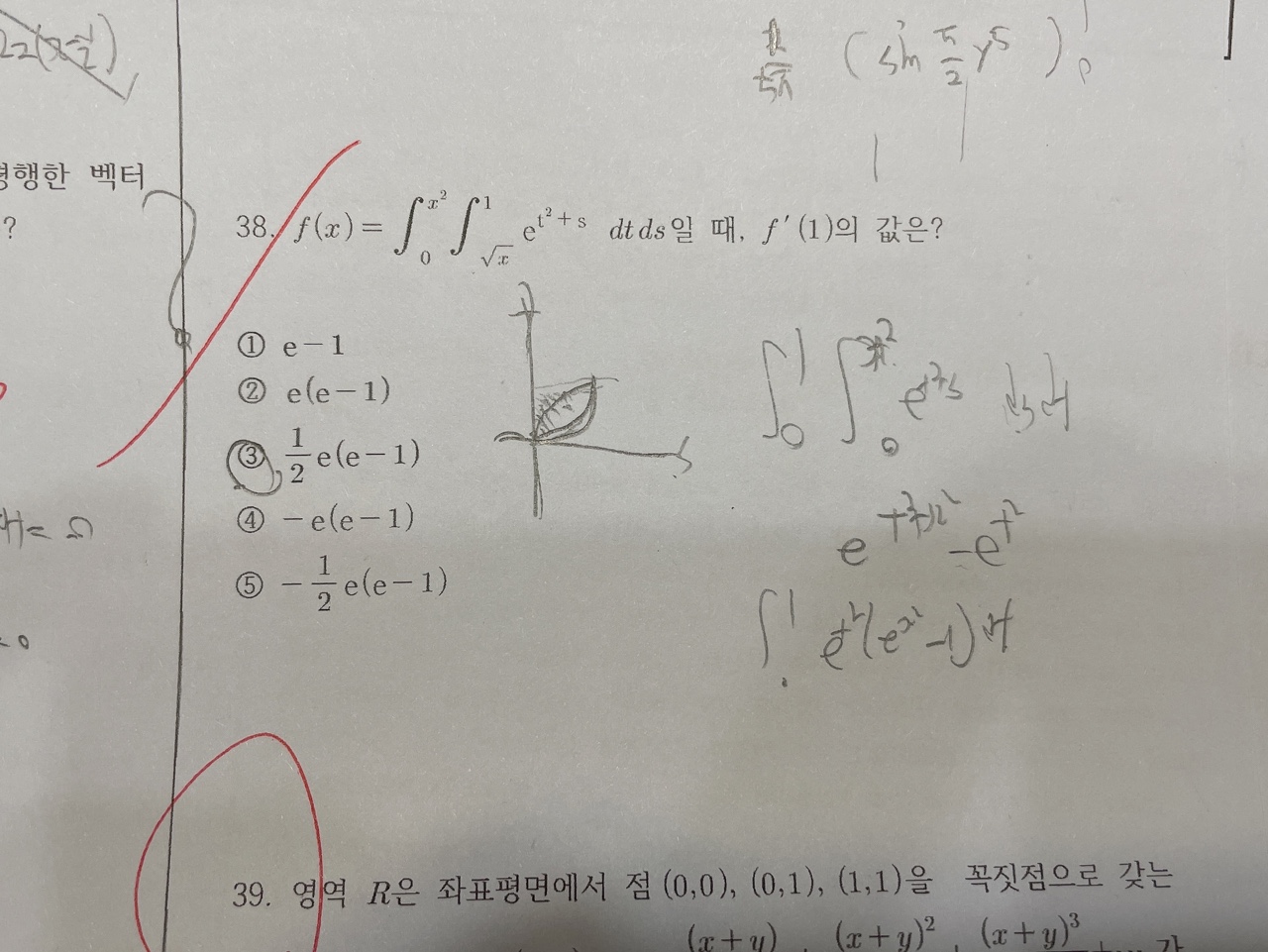 적분범위에 엑스가 변수인데 풀이는 푸비니정리로 따로따로 분리해서 곱의미분으로 풀었던데 선생님풀이가 보고싶습니다ㅠㅠ