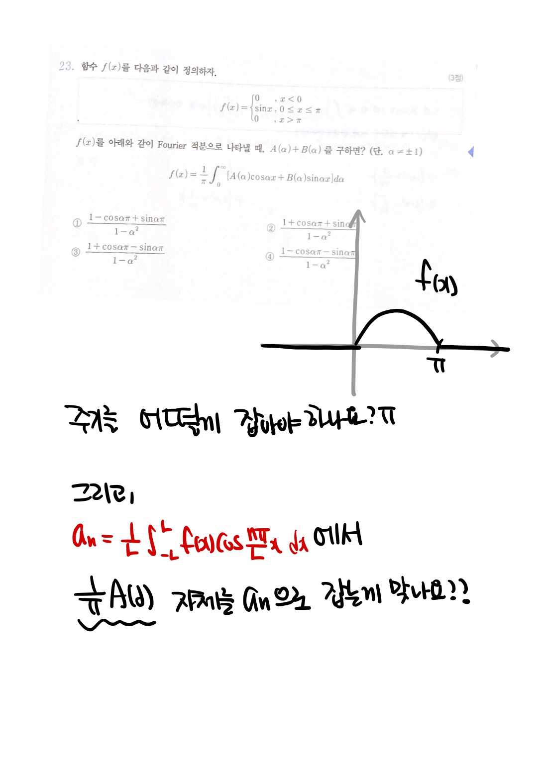 이 문제는 평소 푸리에급수랑 다른 유형입니다. 그래서 주기가 없습니다.