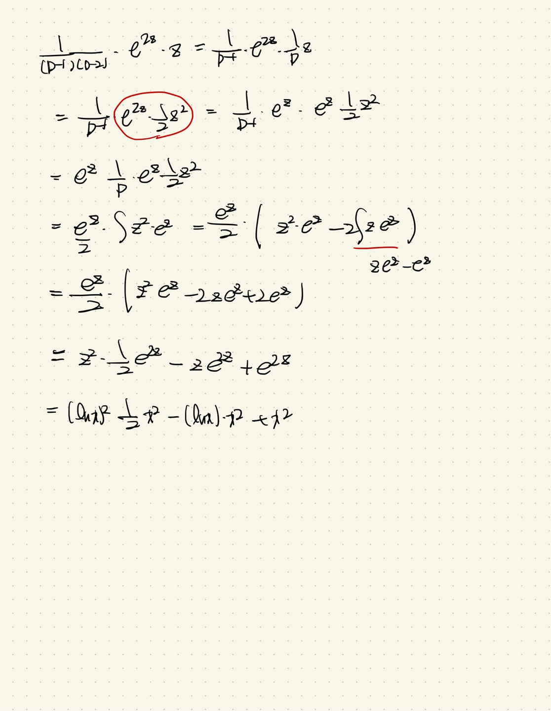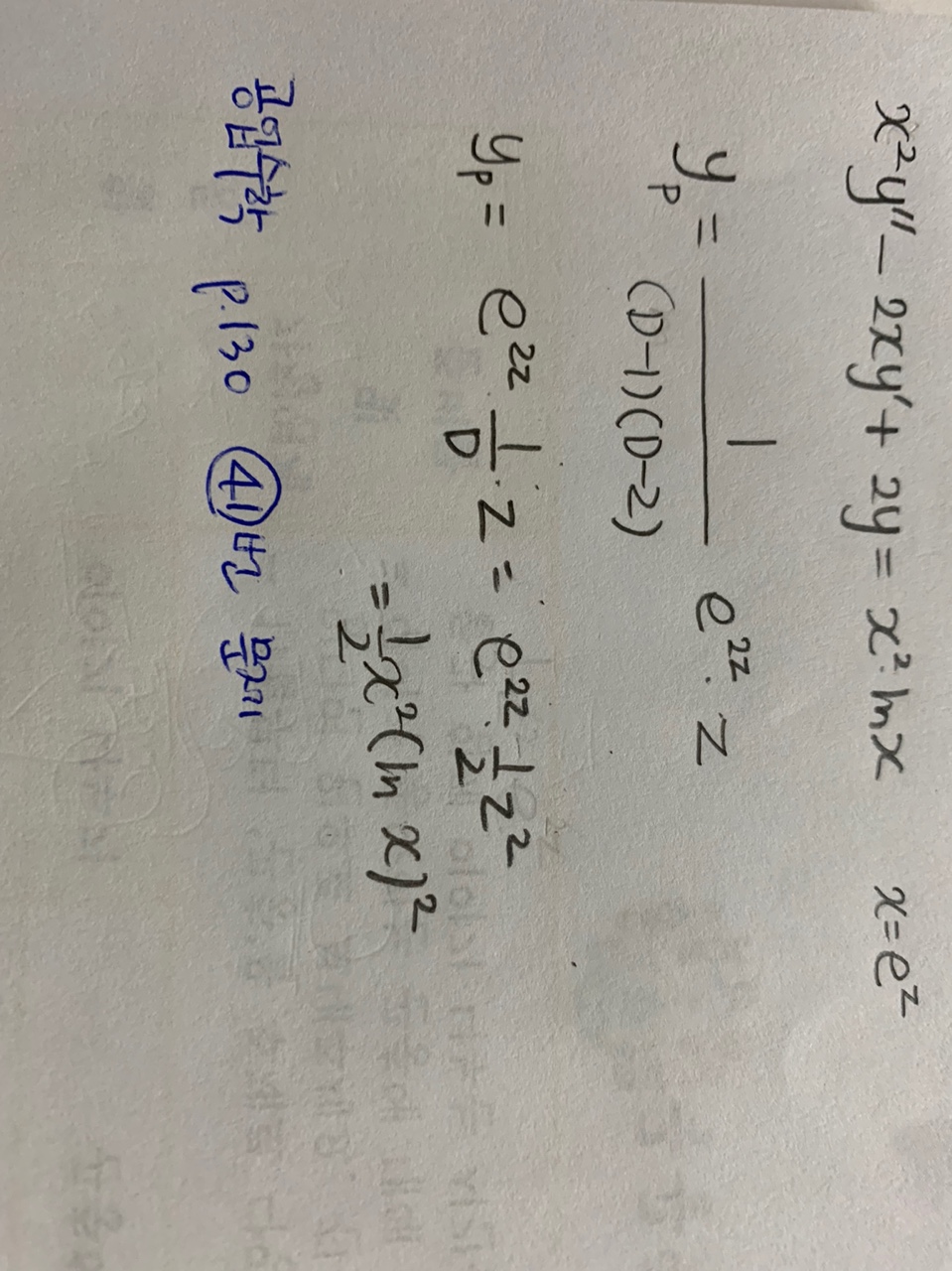 처음 주어진 식이 순수한 지수함수가 아니라 e^2z*z 이기 때문에 d-1 에 2를 집어넣으면 안됩니다. 사실 이러면 계산이 조금 귀찮아 지는데요. 그래서 보통 이걸 론스키안으로 푸는데.. 그게 더 귀찮습니다... ㅠ 그래서 전 이렇게 풉니다! e^2z=e^z*e^z 로 분리해서 d-1 를 뒤로 보냅니다! 아래 풀이 참고해주세요!