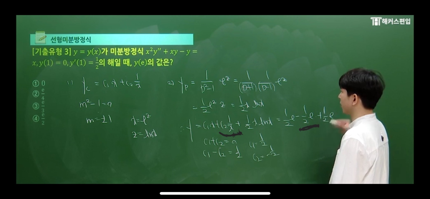 이거 제 실수입니다!! 1/x 써놓고 x 로 판단해서 풀었네요. 그래서 애초부터 c1=1/4 이고 c2=0 이네요ㅠ
