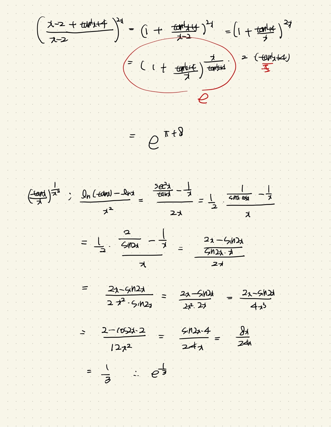 13번은 e의 정의로 풀기 힘들고 ln 취해서푸는데요. 조금 귀찮긴한데 아래와 같이 구할 수 있습니다.