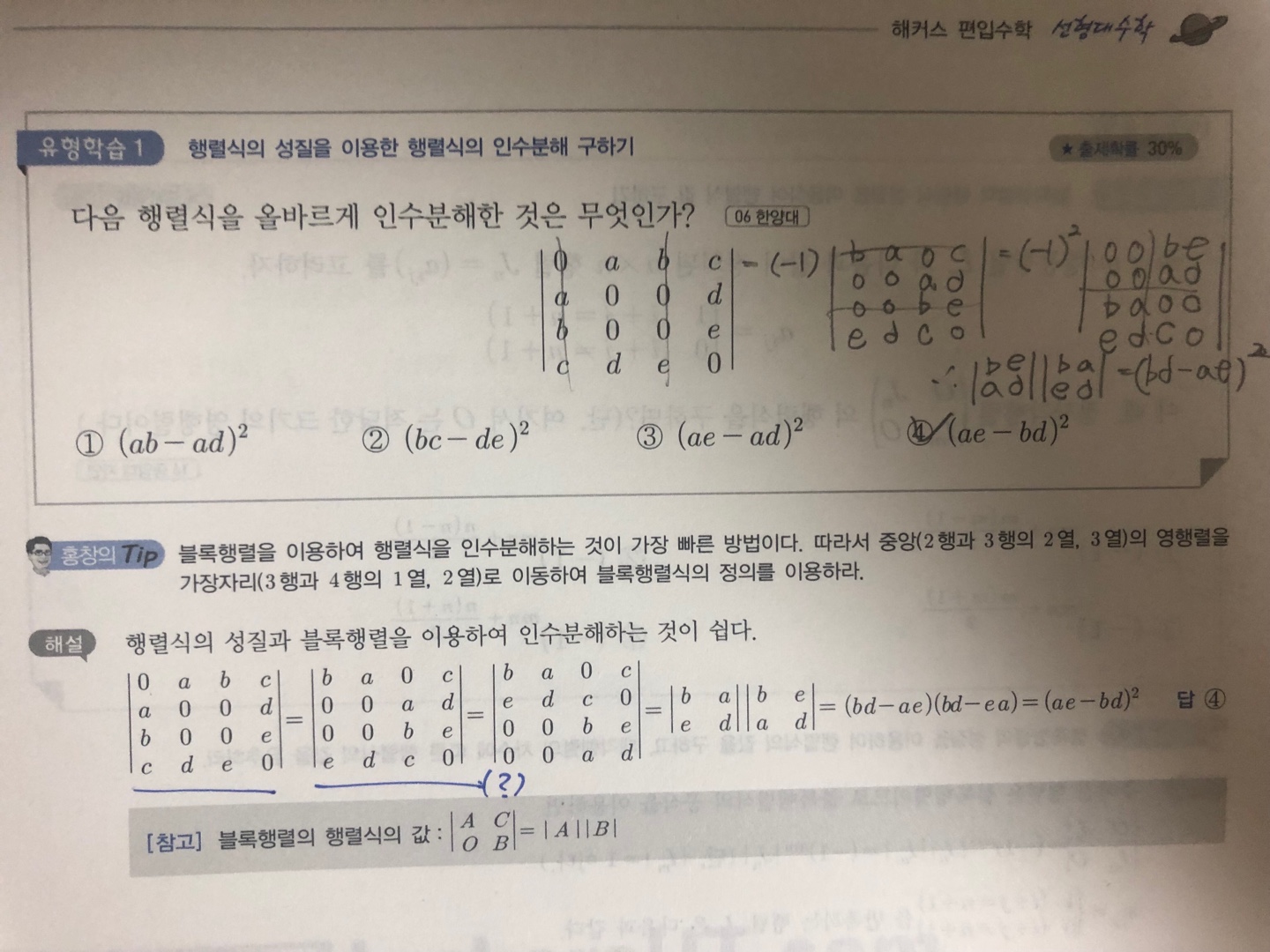 p.69 유형1번 질문입니다. 강의 내용에서는 자리를 바꿀 때마다 -1씩 곱해주신다고 하셨는데 풀이에는 없어서 여쭤보려합니다.