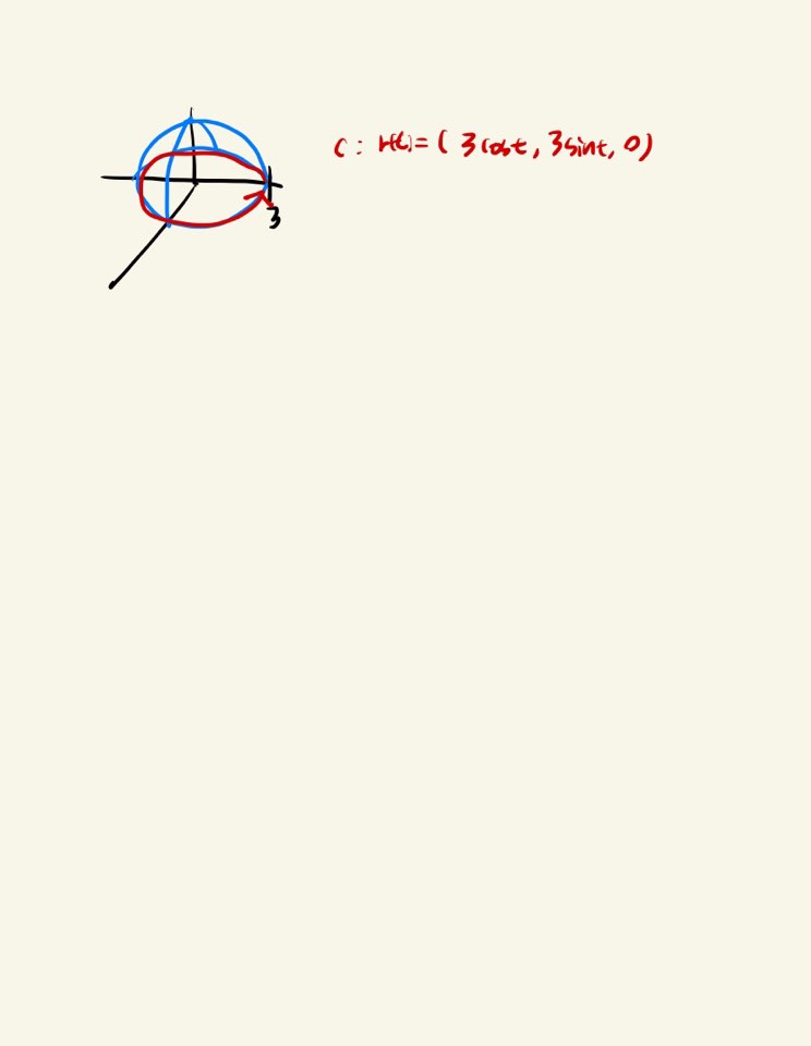 해설지에 북반"구" 이므로 구의 위쪽부분인데, x=3cost, y=3sint 하는건 이해가 가는데요, 해설지에 z=0은 왜 그렇게 치환하나요... 너무 불친절해요 해설지가 전체적으로 그린정리를 사용하려고 z=0 하는줄 알았는데 그것도 아니고 왜 z=0 일까요? |