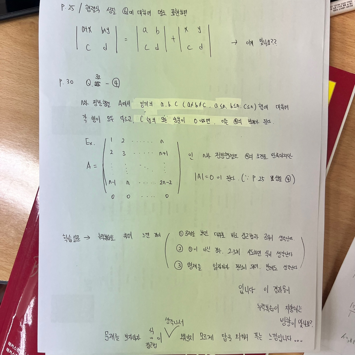 1. 선생님께서 수업 중 25페이지 6번 성질에 대하여 행이 아닌 열에 대해서도 성립한다고 하셔서 생각해봤습니다. 이 방식이 맞나요?