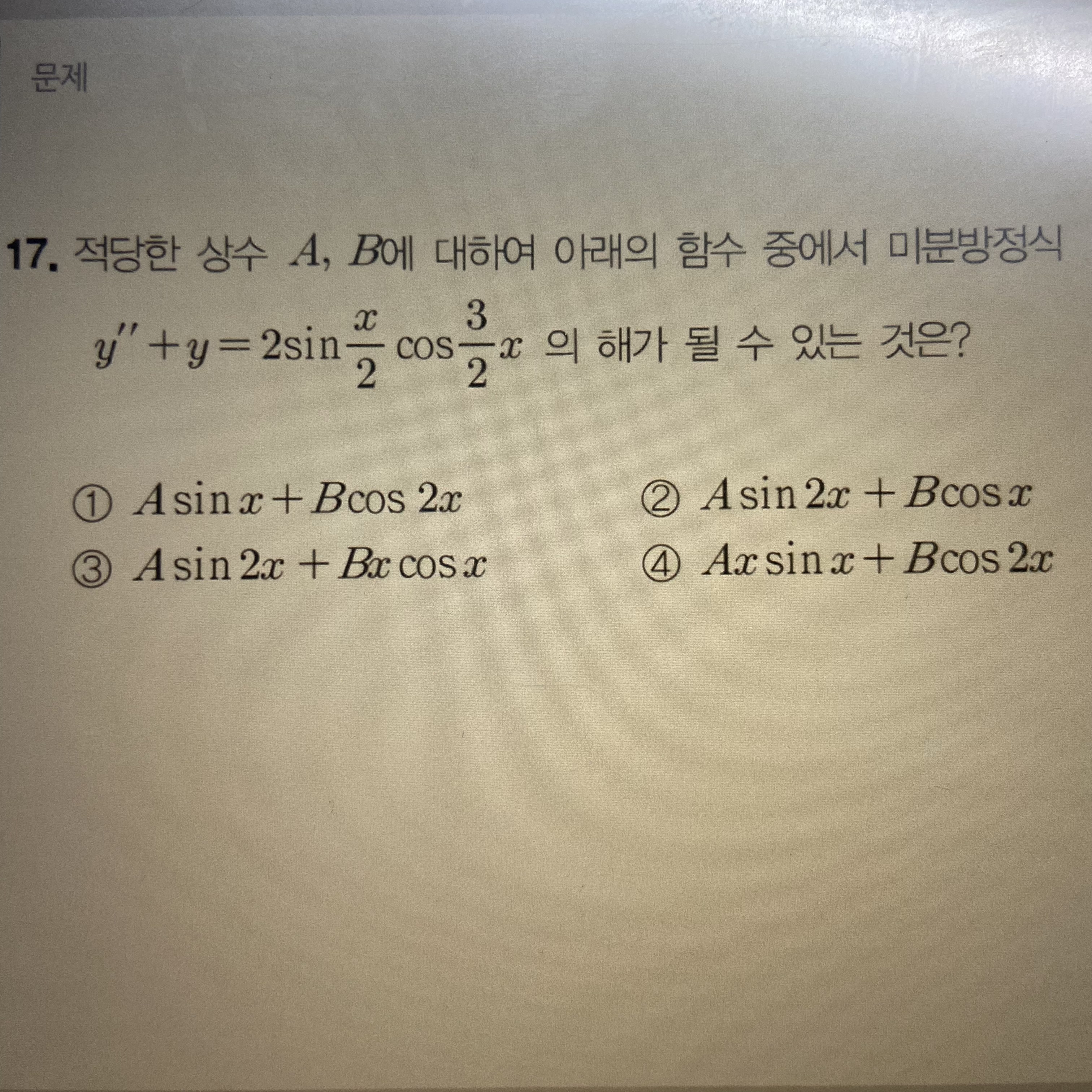 안녕하세요 선생님! 이런 경우 특수해는 어떻게 처리해야하나요?? 일반해까지는 구했는데 yp가 곱의 형태로 되어있어서 막혔네요... 서강대 2015년도 기출입니다!